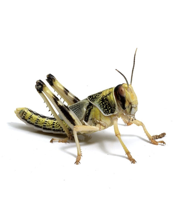 Wüstenheuschrecken mittel (Schistocerca gregaria) haben sich in den letzten Jahren vom Geheimtipp zum beliebten Hauptfuttertier entwickelt. In ihren Eigenschaften ähneln sie den bekannten Ägyptischen Wanderheuschrecken, sind jedoch etwas größer und deutlich farbenfroher.