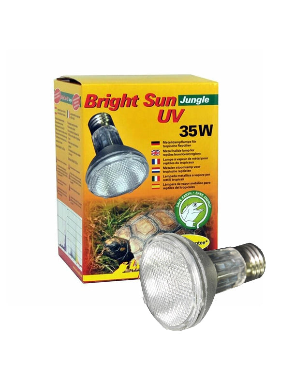 Die Bright Sun UV Jungle ist eine leistungsstarke Vollspektrum-Metalldampflampe mit UVA- und UVB-Strahlung, die speziell für die artgerechte Haltung von tropischen und subtropischen Reptilien entwickelt wurde. Sie vereint intensives Licht, wirksame UV-Strahlung und natürliche Wärme in einer einzigen Lichtquelle und sorgt so für optimale Haltungsbedingungen im Terrarium.