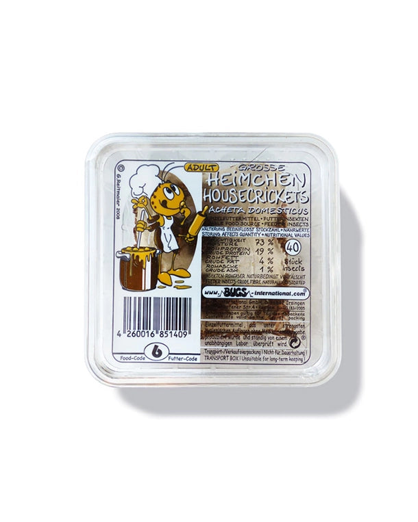 Heimchen sind ein nährstoffreiches, vielseitiges Futterinsekt und ideal für eine abwechslungsreiche und artgerechte Ernährung. Je nach Größe eignen sie sich sowohl für Jungtiere als auch für ausgewachsene Tiere.